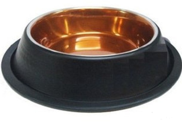 Castron metalic de calitate superioara, avand atasat in partea inferioara un manson de cauciuc care ii ofera o buna stabilitate. Se vinde in diferite marimi, fiind util pentru toate rasele de caini.