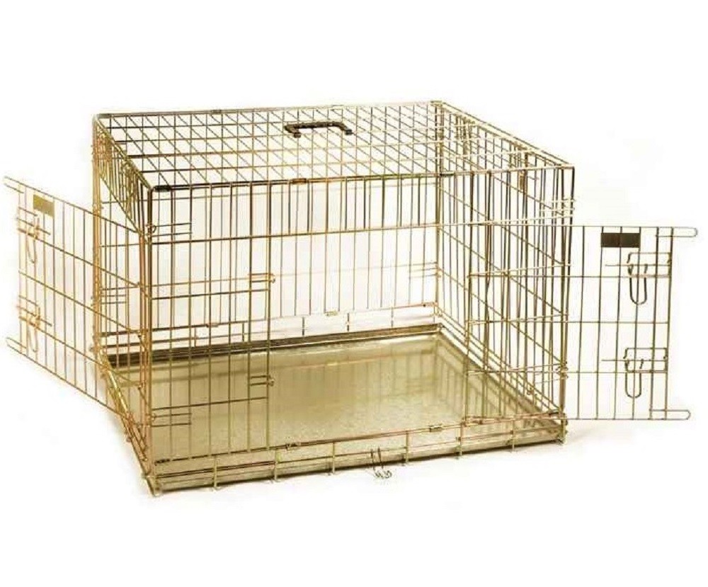 Cusca de transport metalica prevazuta cu tava metalica. Are 2 usi laterale si permite transportul animalul de companie in siguranta.