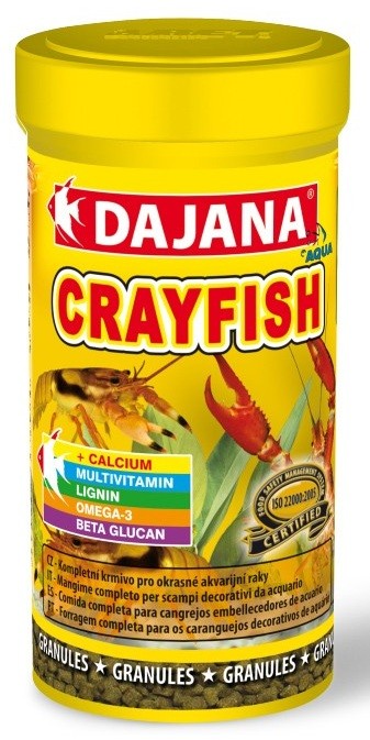 Hrana completa sub forma de granule pentru raci de acvariu. Contine peste, cereale, concentrat de proteine vegetale, drojdie uscata, crustacee, legume, sprulina, alge, grasimi.