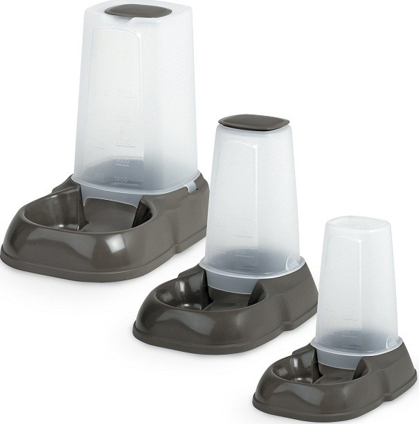 Castron cu dispenser pentru hrana uscata, ideal cand animalul ramane singur acasa.