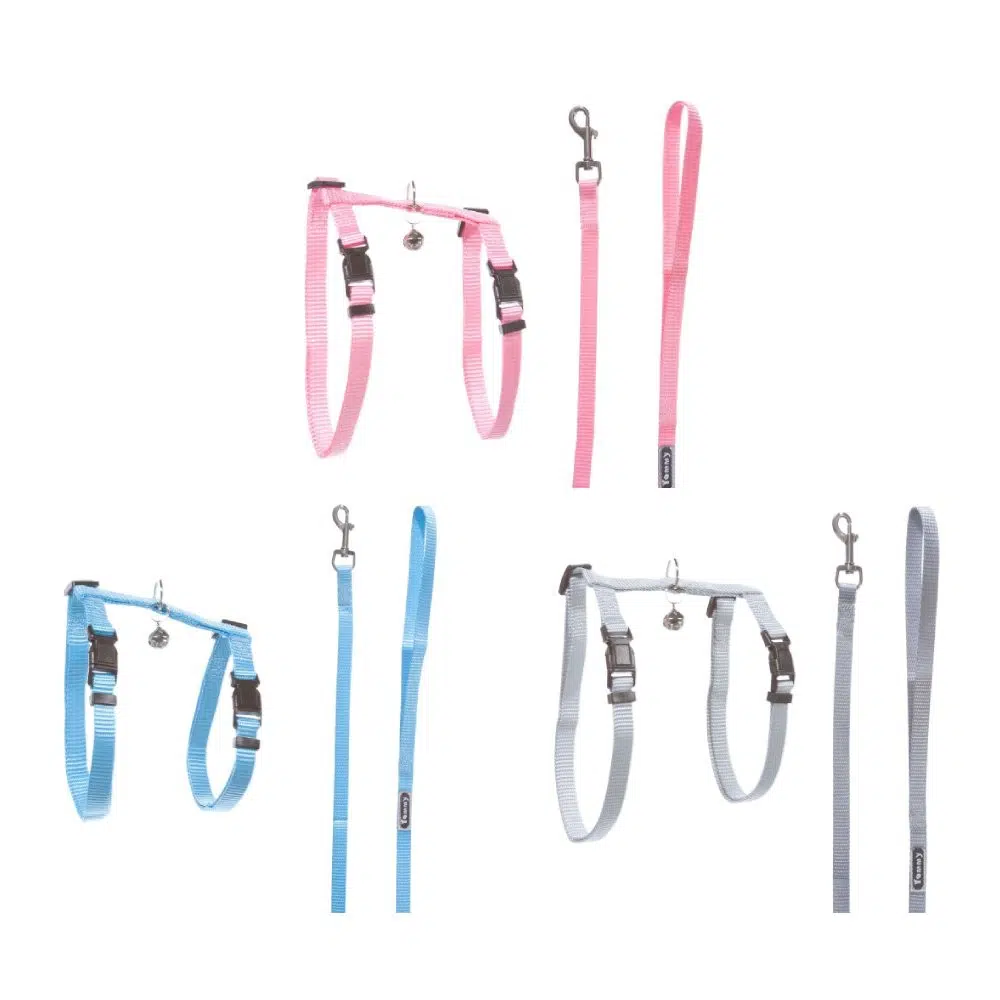 Include ham textil reglabil și lesă textilă de 1,2 m, oferind control și siguranță în deplasare.