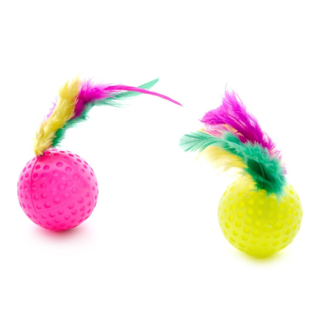 Jucarie minge cu pana, conceputa pentru amuzamentul pisicutelor. Se vinde la set de 2 bucati.