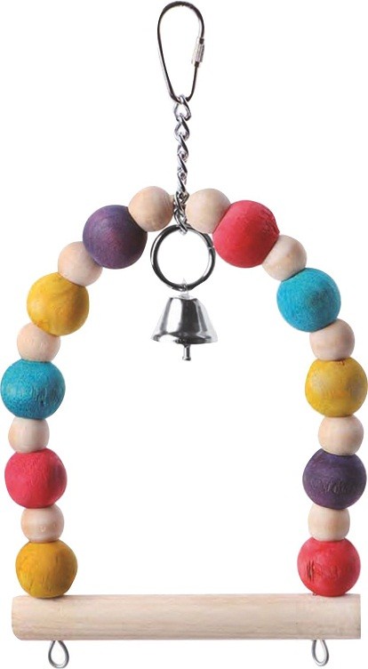 Jucarie leagan, confectionata din lemn, pentru atasarea la colivia pasarilor.