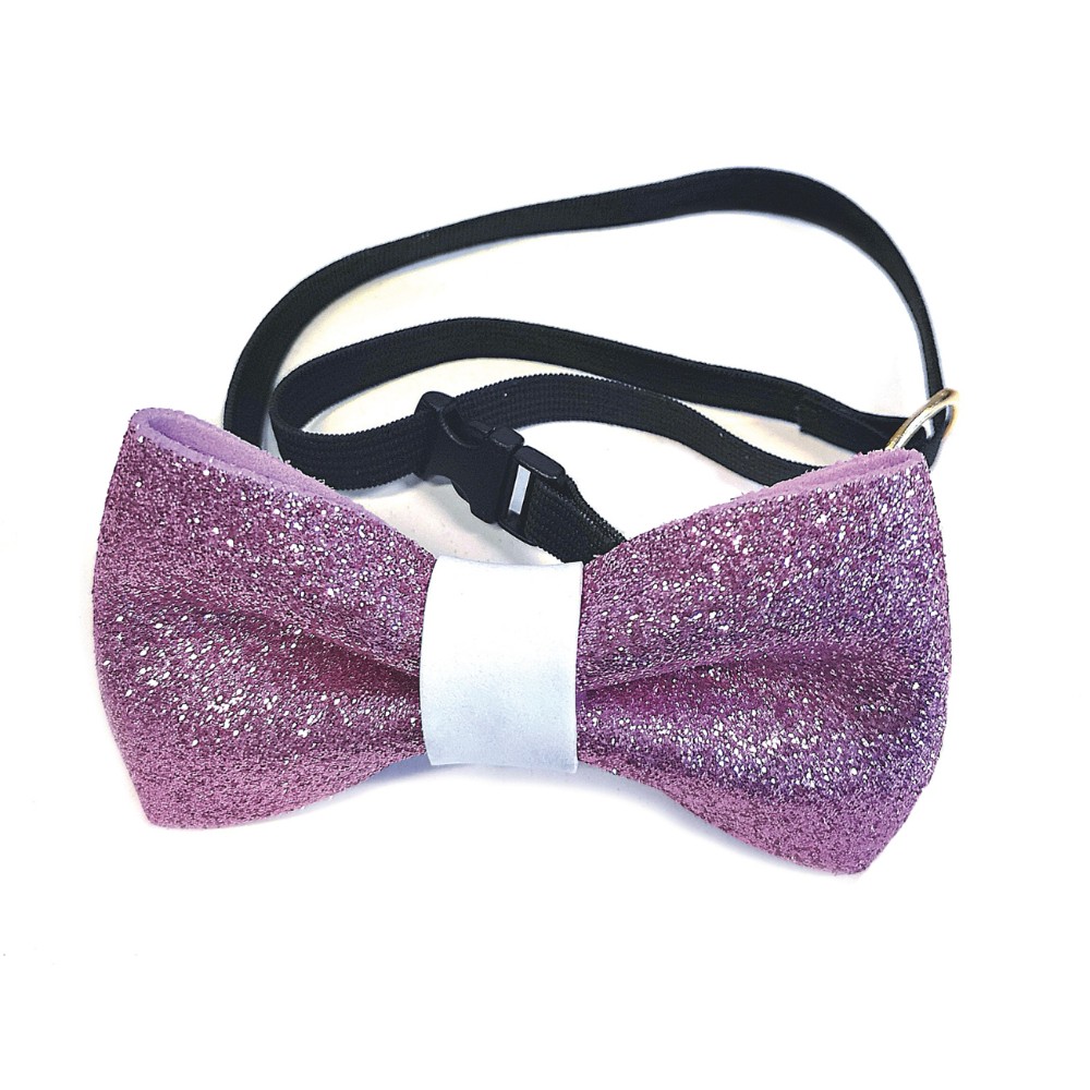 Papionul este confectionat din material textil fancy, disponibil in 4 culori. Are atasat o bentita reglabila pentru atasarea la gatul cainelui.
