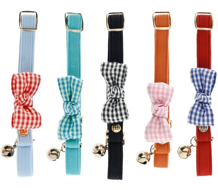 Zgarda textila cu fundita in carouri. Este recomandata pentru pisicute si catei mici (bichon, yorkshire, teckel, etc).