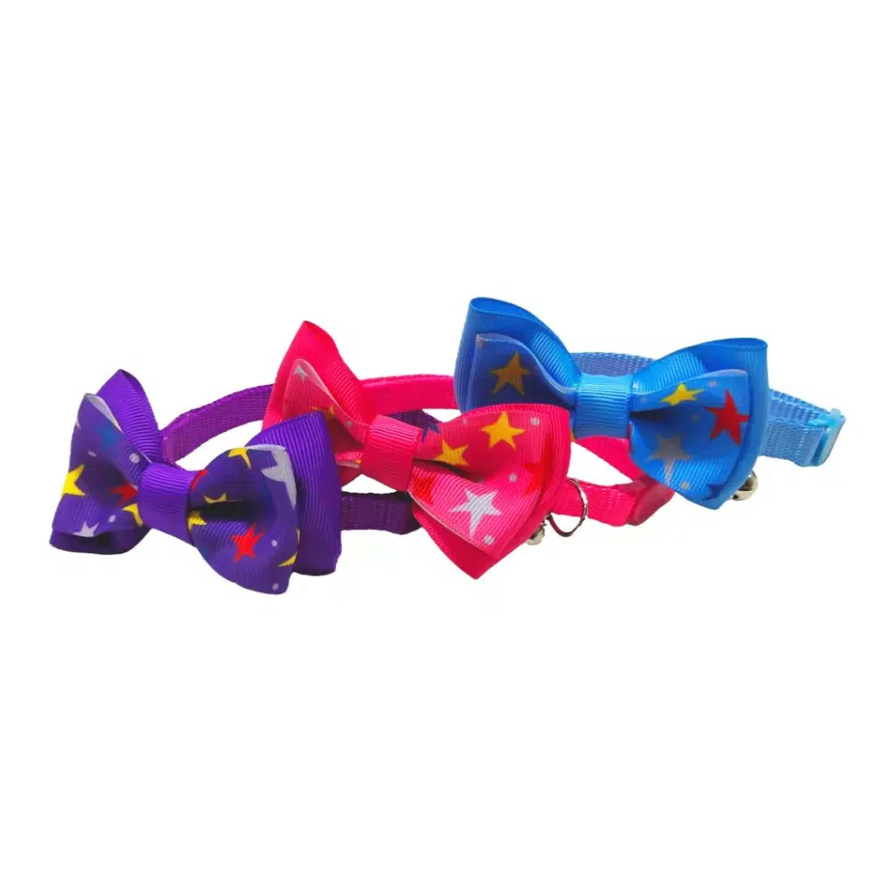 Zgarda cu fundita confectionata din chinga textila, eleganta, rezistenta la rupere, de diferite marimi, in diverse culori (albastru, roz, mov). Are catarama din pvc de inalta rezistenta, find usor de reglat in jurul gatului. Avand latimea de 10mm si lungimea de 31cm, este potrivita pentru caini de talie mica (bichon, yorkshire, teckel, etc).