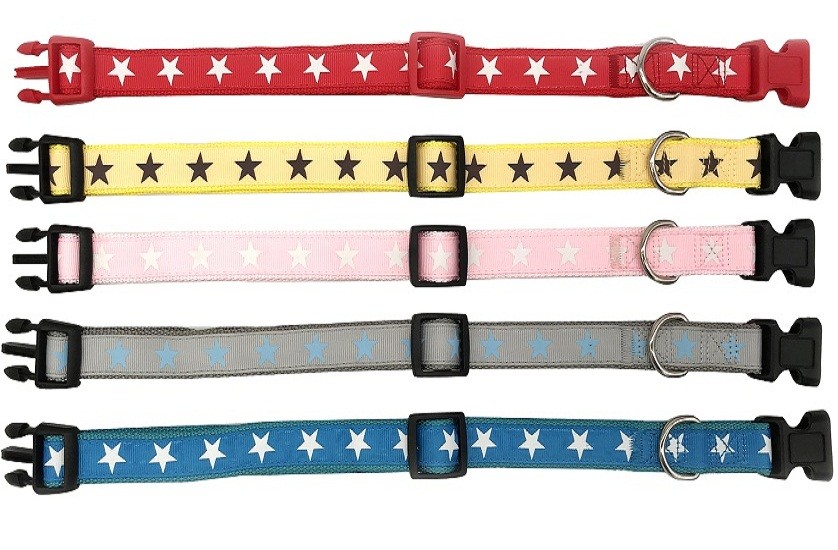 Zgarda fancy textila cu catarama rapida, mix color, ideala pentru caini de talie medie (pechinez, beagle, cocker, shitzu, etc).